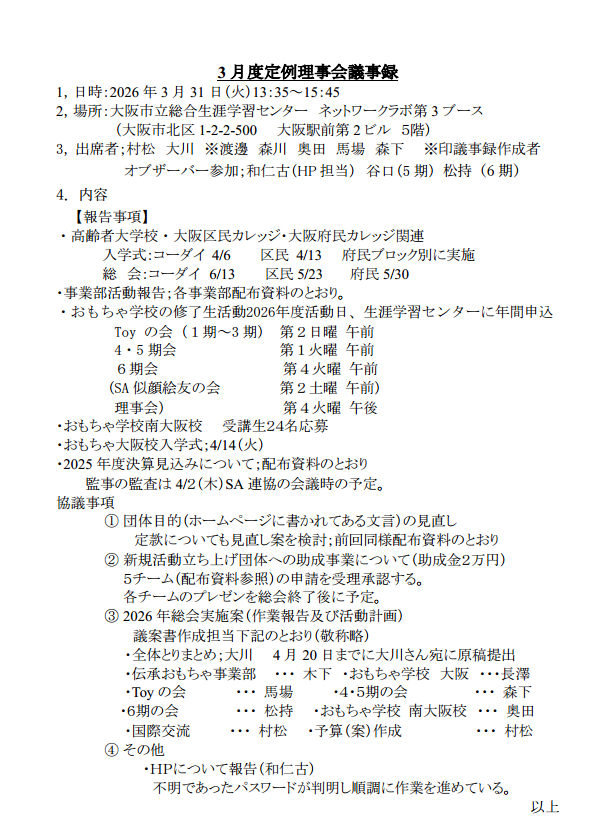 2026年3月度 定例理事会 議事録